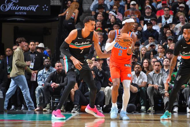 当面对马刺队时,雷霆队暴露出内线缺少防守深度的问题,他们完全无法限制文班亚马在内线得分,同时当失去罚球后,亚历山大的进攻威胁性也大大降低。